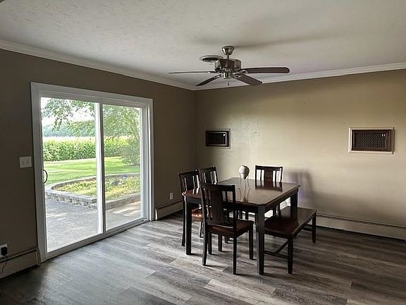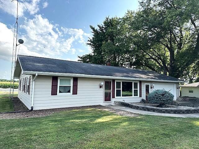 Rural .45A plat, adjacent to farmland approximately two miles from town, this attractive 3 bedroom, 2 bath ranch home offers a desirable floor plan with spacious living room open to large kitchen/dining/family room area, master bedroom with master bath, laundry accessible from bath and kitchen, 14x27 back patio off of dining area, 10x12 workshop!! So many updates and improvements, both full baths have been totally remodeled, master bath shows off a ceramic shower, kitchen has received a face lift with fresh cabinet color, portable island, new deluxe vinyl flooring and new appliances- refrigerator, stove top and dishwasher, fresh paint throughout the home, all carpeting and vinyl installed a year ago, all except the garage windows have been replaced, new patio slider, central air is 4 years old, roof is 12 years old, water heater installed in 2019, water softener is 6 years of age. Along with excellent maintenance and added interior amenities, the home is cable ready and features a garage utility sink, vinyl fencing to the back of the yard, asphalt drive, castle rock landscaping beds, newer garage door opener, and more! Let's not forget to mention the lower taxes, terrific neighbors, the close proximity to the all three levels of education and the lack of restrictions the rural home has to offer! HOME WARRANTY being offered to buyer at closing.