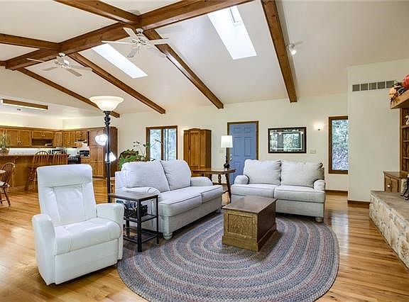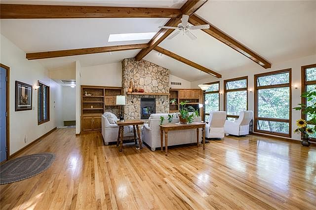5 Acres m/l in Platte County, nestled in the trees, off blacktop road. This is the one you've been waiting for! Large kitchen, large great room w/ hardwood floors & wood burning fireplace, large master bedroom on the main level, large screened in porch off kitchen to enjoy wild life viewing. Additional 1/2 bath upstairs.2nd bedroom in basement along with full bath, hobby/rec room with walk out basement. New Carpet and flooring in basement. Newer Roof, newer HVAC. It's a must see! Skylights and windows make this home light and bright, it really brings the outdoors in. Actual tomahawks found on the property are part of the fireplace! This home is a must see if you like privacy & seclusion, yet enjoy modern conveniences nearby. KCI Airport, Platte City, Zona Rosa, Parkville, Legends speedway/shopping all very short drive.