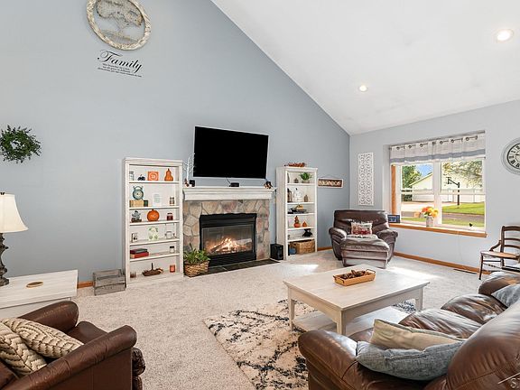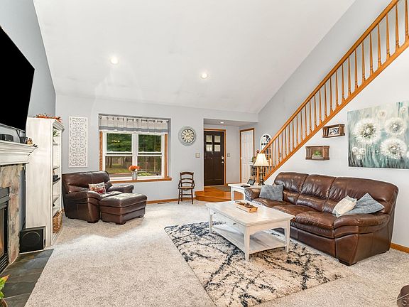 This beautifully updated 4-bedroom home blends modern style with everyday ease in one of Freeland’s most desirable neighborhoods. Vaulted ceilings and hardwood floors create a welcoming atmosphere, anchored by a striking stone-wall gas fireplace. The spacious family room flows seamlessly into the dining area, creating a warm, open-concept layout that's perfect for everyday living and easy entertaining. The kitchen is a true standout -- featuring solid wood cabinetry, granite countertops, new backsplash tile, updated appliances, and thoughtful finishes. The first-floor primary suite offers a peaceful retreat, complete with a fully remodeled bath showcasing sleek custom tile and new vanity. Enjoy first floor laundry, and stylish shiplap walls in the main floor half bath and hallway. Downstairs, the partially finished basement expands your possibilities with a cozy family room, dedicated office, and workout space. And outside? A lush, tree-lined backyard awaits, with patio pavers, a covered hot tub area, and firepit—perfect for relaxing evenings or weekend gatherings. Recent upgrades include a newer furnace, water heater, and plush carpet in the great room, adding comfort and value throughout. This home checks all the boxes: stylish, spacious, and ready for you. Schedule your private tour today!