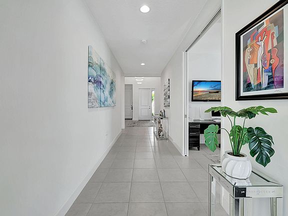 Quartz countertopsLight neutral paletteSealed tile floorsFull rain guttersScreened patioGray glass backsplashExtended pavers