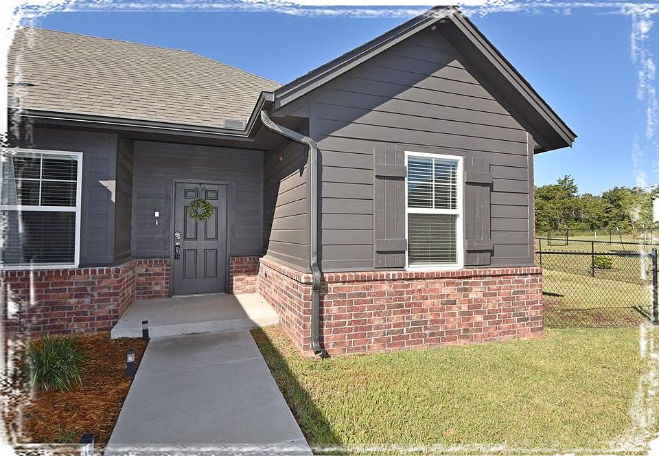 Great open floor plan, , this single-family residence offers a haven of contemporary comfort and style. Constructed in 2022, this property represents a fresh start in a desirable location.. Primary Bedroom Suite has two walk-in closets and opens directly into the utility room. Primary Bath offers large shower and double vanity. The living room, dining area and kitchen are open and interconnected with wood look ceramic tile. Carpeting is limited to the bedrooms. The two car garage is over-sized. The back yard is very large and has a black vinyl coated chain link fencing enclosing a large portion of the yard. Nice sized back patio with a location that offers privacy for you and yours. This home has granite counters; wood look ceramic tile and 2" window blinds. Ready to move-in.