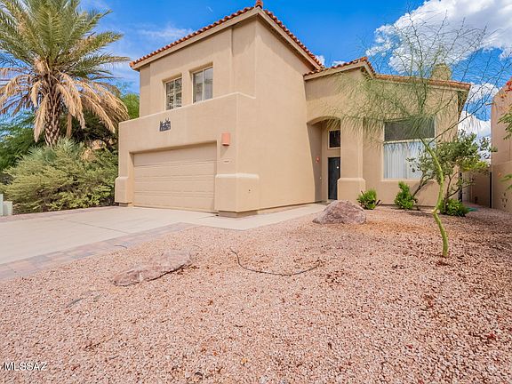 VIEWS, VIEWS!! Enjoy sweeping Catalina Mountain views from the balcony, deck, and backyard of this beautifully upgraded home. Seller has added designer touches throughout, granite counters, backsplash in kitchen and baths, upgraded LED lighting, porcelain tile downstairs, hardwood floors upstairs, and fresh paint. The kitchen shines with new stainless-steel appliances, while upgraded showers elevate the baths. The primary suite offers two walk-in closets, a private balcony, and stunning mountain views. The expanded 2nd bedroom has its own en-suite bath and dual closets. The fenced backyard features flagstone, low-care landscaping, and a lemon tree, ideal for entertaining. Additional highlights include no polybutylene pipes, inished garage floors, affordable HOA, and close proximity to top schools, shopping, dining, medical, and Naranja Park. A rare find with unobstructed views and modern upgrades!