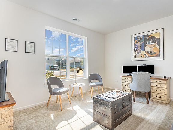 Looking to purchase in the desirable Aylesworth community? This beautiful, 2023 new build, ranch home is ready for you! Boasting a spacious open concept floor plan between the kitchen, dining room, and living room that is perfect for hosting the next friendly gathering. The kitchen features a pantry, stainless steel gas oven, dishwasher, microwave, and large sink, and chic updated brass hardware. All bedrooms feature large closets, including the primary suite with a large walk-in closet, and private en-suite with a double vanity and shower stall with glass sliding doors. The bonus front living room is a flex space that can easily be used as a sitting room, home office, or converted to a 4th bedroom for guests. Outside, the back patio overlooks a field so there are no rear neighbors! The community amenities feature an outdoor pool, splash pad, playground, clubhouse, and walking trails. Inquire today to schedule you tour and see this beautiful home!