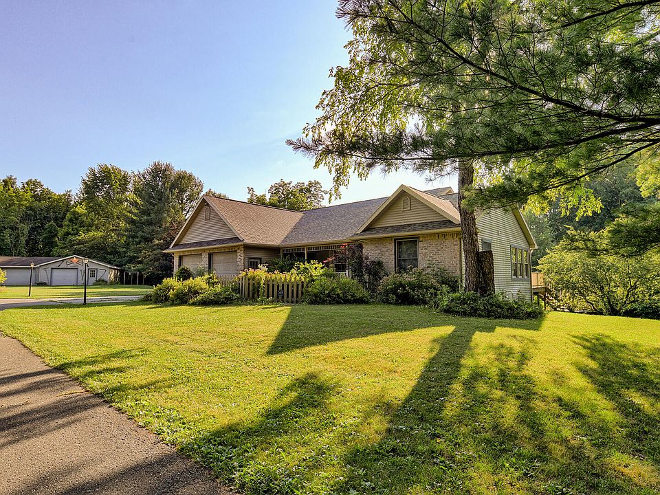 Once in a lifetime opportunity! 5BR 3.5Bt custom built ranch on 10 acres between Lansing & GR. Open floor plan, lots of natural light in LR overlooking rear deck & private backyard. Check out the pond & firepit. Primary is separate from living area, large WIC & bath with whirlpool tub, plus private deck. 3 additional main floor BR's. One has sunroom feel, one could be home office with bay window & window seat, one more private. Main floor laundry. Lower level is walkout. Giant Rec room has wet bar. Additional BR or office. Tons of storage, closets, cold cellar. Full bath has sauna. Check out workshop with exterior access. 2 car att garage. Whole house generator. Bonus 24x32+20x24 pole barn! Heavy duty users check out 32x56+40x48 pole barn & 40x60 barn/covered storage. Tons of potential!
