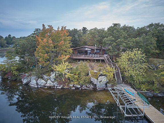Secluded Lakefront Gem on Sparrow Lake, Muskoka! A rare opportunity to own your own piece of paradise an enchanting family cottage to be cherished for generations. Just 90 minutes from Toronto, this 0.82-acre wooded lakefront property offers enduring privacy, protected in perpetuity by a unique Environmental Protection Zone that shields hundreds of adjacent acres from future development. With 195 feet of shoreline, the lot provides ample space for potential multi-structure redevelopment. No neighbours within earshot. Privacy assured. The existing four-season cottage features 4 bedrooms and 2 full washrooms, showcasing a classic wood cabin charm with vaulted ceilings, expansive windows, and lake views from two sides. Interiors include timeless Pioneer Handcraft wood furniture. The surrounding landscape and shoreline are filled with captivating nooks and crannies perfect for kids and nature lovers to explore. Enjoy deep, clean waters ideal for swimming and diving off the dock, in a tranquil bay free from boat traffic. The spacious wrap-around deck and large dock both recently refinished offer generous space for entertaining and relaxation. Additional outdoor features include a fire pit, premium outdoor furniture, a canoe, four kayaks, paddles, and life jackets for endless lakeside enjoyment. Sparrow Lake is a renowned fishing haven, home to northern pike, bass, walleye, perch, and more.