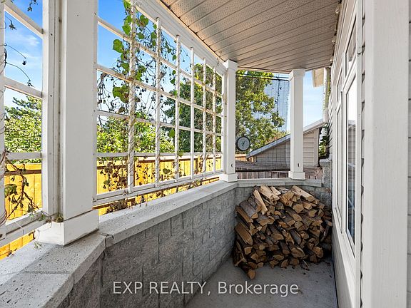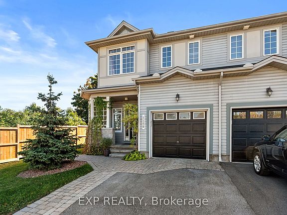 This stunning 3 bedroom, 3 bathroom end-unit townhome is just steps from the heart of Manotick village, offering an unbeatable combination of location, charm, and custom upgrades. A tiled foyer with additional custom windows sets the stage with views that draw you into the home from the wraparound front porch, while providing convenient access to the garage and a powder room. The main floor features beautiful hardwood flooring, and custom craftsman-style wainscotting throughout, enhanced by pot lights and custom window shutters. The kitchen offers ample counter space, tons of cabinetry, and a breakfast bar, creating a warm and functional space for everyday living and entertaining. Upstairs, the spacious primary retreat boasts a large customized walk-in closet, beautiful flooring, and a double-sided fireplace that adds warmth and romance to both the bedroom and the spa-like ensuite, complete with a large roman tub and separate shower. Two additional bedrooms and a full bath complete the upper level, including one with custom millwork that makes it ideal for a home office, study, or craft room. Every room feels light-filled and thoughtfully designed, blending comfort with character. The lower level is made for entertaining, with exposed brick accents, a cozy family room, and a custom games area with a dart board. This versatile space is perfect for movie nights, game nights, or simply relaxing with family and friends. Outdoors, the fully fenced backyard extends your living space with a custom four-tier deck offering multiple zones to BBQ, lounge with friends, watch TV, or enjoy a drink at the bar. With its mature landscaping and private feel, its a true summer retreat. With boutique shops, restaurants, schools, parks, and the Rideau River just a short stroll away, this property offers a rare chance to live in a vibrant community while enjoying a home full of upgrades, thoughtful details, and timeless character.