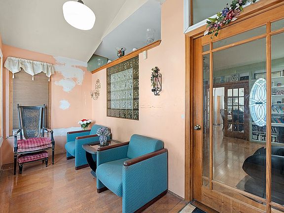 Detached single-family home nestled on a quiet tree-lined block, this residence welcomes you with a classic brick façade and an enclosed front porch entry, along with a private driveway that comfortably fits several cars. Step into the enclosed front porch foyer, a bright space with bay-style windows that flood the room with natural light, offering the perfect spot for a reading nook or seasonal display before glass-paned doors lead you inside. The main level unfolds into a living room defined by gleaming hardwood floors, custom built-in shelving, and elegant French doors, creating a warm yet sophisticated gathering space. Adjacent, the formal dining room is illuminated by a chandelier and tall windows, providing a graceful setting for family meals and entertaining. At the rear, the kitchen impresses with rich wooden cabinetry, granite counters, a striking tile backsplash, and a large center island with pendant lighting, ideal for both cooking and casual dining; stainless steel appliances complete the space, and a conveniently located bathroom sits just off the kitchen. A glass-paned rear door opens directly to the deck and fully enclosed backyard, allowing for seamless indoor-outdoor living. Upstairs, the third floor offers three spacious bedrooms, each featuring hardwood floors, ample closet space, and large windows that bathe the rooms in light. The full hallway bathroom is finished with marble-style tile, a sleek vanity, and a glass-enclosed shower and tub. The fourth floor houses a full attic, a wide-open expanse with pitched ceilings and exposed beams, offering flexibility for many different uses. The basement provides a true blank canvas with multiple rooms ready to be customized, complemented by a full bathroom for convenience. Outdoors, the enclosed backyard is designed for entertaining with a covered outdoor kitchen and grilling station, durable tiled flooring, and plenty of room for seating. At the rear, the converted garage has been transformed into a self-contained suite with a full bathroom, a closet, and a Murphy bed. Altogether, this home blends timeless charm with versatile living, offering practicality and possibility on every level. All showings are exclusively conducted through open houses; private viewings are NOT an option, so kindly refrain from requesting a private viewing as we are unable to accommodate such request. Open House times will be posted one week prior to the scheduled open house to allow ample planning time. We ask that all interested parties keep it saved online so you can receive notifications about upcoming open house times, and when an upcoming open house time is made available, you’ll be notified. Brokers/Agents have the option to send their clients to the open house by texting or emailing buyer information ahead of time if they cannot attend together. Disclaimer: All information provided is deemed reliable, but is not guaranteed and should be independently verified.