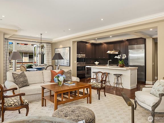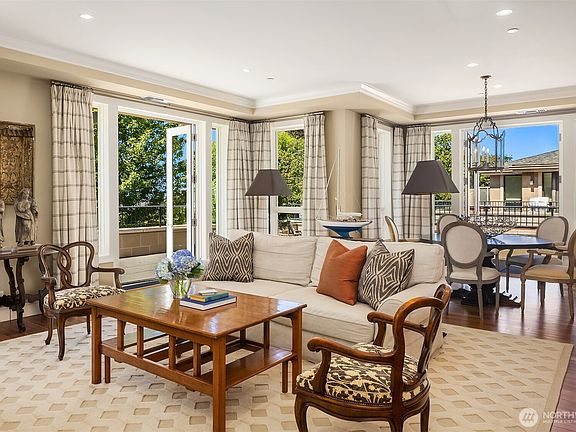 True penthouse at Harvard & Highland! Set on a quiet tree-lined street, among historic mansions in Harvard Belmont. Open layout flows with ease. A sleek marble fireplace anchors the living/dining area adjacent to the chef’s kitchen w/ gorgeous island & quality appliances. Office tucked in charming alcove.French doors lead to wraparound terrace, perfect for alfresco dining & outdoor living.The primary suite features glimpses of the Olympic Mountains, terrace access, walk-in closet & deep soaking tub.2nd ensuite bedroom offers peaceful garden outlook. Additional highlights:chic powder bath, laundry & 3 parking spaces.Enjoy privacy of gated community w/ tranquil courtyards & gym. Offering an elevated lifestyle in the dynamic Capitol Hill area.