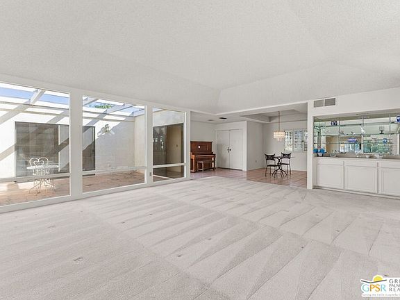 Palm Springs is about feeling the luxury of lifestyle, architectural excellence and beautiful surroundings. This home exemplifies all that. As you enter the 44 acre complex you are immediately impressed by the lush grounds and wide open spaces. Sunrise East is known for the miles of paths that take you past the sports courts.tennis and pickleball, past the many pools and spas and of course the numerous citrus trees and all the landscaping that always has lots of color in bloom. Of course everywhere you look, you also see those mountainsthose majestic, wonderful mountains that seem to be different colors at different times of the day. All that is before you enter this amazing 3 bedroom 2 bath condo. Once inside, your eyes are drawn to the lines of the design accentuated by the natural light that flows through the home adding to the warmth created by a both beautiful and functional floor plan. The home has a very large atrium that invites you to use your imaginations as to what it can become and how it would work for you. It is large enough that you have a plethora of options for this very usable space. This home has been lovingly cared for and none of the amazing details have been altered. As you walk through the home your mind gets to enjoy the experience of seeing the original intent of design while offering you a world of possibilities. This home is priced to give you plenty of upside potential and room to make it your own. All this is so close to down town and yet also easy access to the rest of the Coachella Valley. If you have not seen Sunrise East and specifically this unit, then you really must demand to see it before making any purchase decision.you owe it to yourself. And NO it is not on leased land.