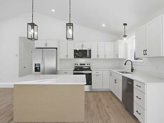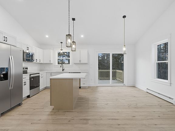 New Construction - Ready in 4 Weeks! Highly desirable open-concept ranch offering convenient single-level living. The great room features a cathedral ceiling, while the kitchen boasts timeless white cabinetry, a center island, granite countertops, and stainless steel appliances. The dining area opens through a slider to a private back deck, perfect for relaxing or entertaining. Three bedrooms include a spacious primary suite with a full bath and large closet. Easy-maintenance luxury vinyl plank flooring runs throughout, with granite vanity tops in both bathrooms. A full daylight basement provides plenty of room for future expansion if desired. Efficient FHW propane boiler. Taxes to be determined. Images are of a comparable home; finishes and details may vary. Fantastic location near Casco Village, offering a public beach and boat launch on Pleasant Lake, an ice cream shop, library, and an active community center—enjoy small-town charm with easy access to lakes, trails, and year-round recreation!