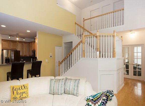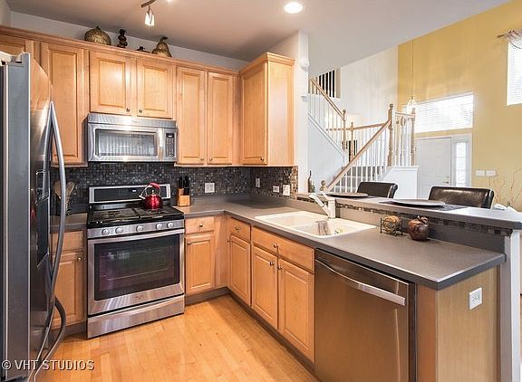 Stunning three bedroom end unit in Country Club Village. Beautifully maintained and upgraded! Maple floors throughout most of the first floor. Upgraded lighting fixtures and ceiling fans. Custom decor and paint. Remote controlled window treatments. White trim and three panel doors. Amazing finished basement with great storage plus a rec room, half bath, and flex room. Soaring two story living room with fireplace. Awesome kitchen with a pantry, 42 inch maple cabinets, new stainless appliances, and tile backsplash. Formal dining room with sliding glass door to oversized private patio. First floor den. Vaulted master bedroom opens to updated bath with granite vanity top, double sinks, lovely tile work, new mirrors and light fixtures, a soaking tub, and a walk in shower. The hall bath has also been updated with a granite vanity top, new mirror, and new light fixtures. Easy access to I-88, Route 59, and Metra station. Highly acclaimed District 204 schools. Just move in and enjoy!