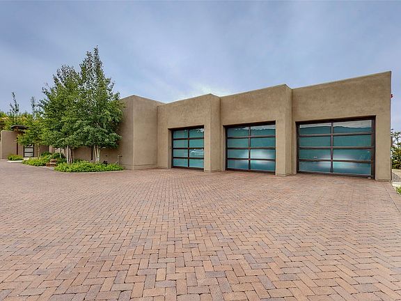 A must see 2 bedroom 2.5 bath Contemporary Tierra Concepts home in the gated community of High Summit with large windows and stunning views. No interior steps. Tile and wood floors throughout with plentiful wall space for art. Open concept floor plan. Light and bright, sleek gourmet kitchen with 6-burner Wolf range, Sub-Zero refrigerator, and long center island. Spacious primary suite with fireplace, and Zen-style spa like bath with private courtyard. Second bedroom is in a separate wing of the home for privacy and offers flex space as an office/studio. Long patio for outdoor dining and entertaining. 3-car garage, landscaping with drip/sprinkler system. Paved roads, City water and sewer, buried electricity and natural gas, and high-speed internet all enhance the lifestyle at the High Summit. Excellent location, just minutes from downtown.
