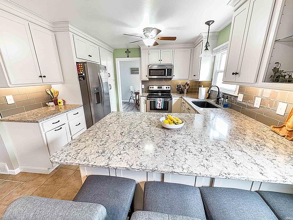 Welcome to your future home, where contemporary charm meets family-friendly living! Nestled near the tranquility of a dead-end street, this 3-bedroom house is in a perfect location for your family to enjoy. Inside you will discover a spacious living room with new laminate flooring, and an updated kitchen with quartz countertops, and a dining room. The master suite has new carpeting in the bedroom, as does one of the two additional bedrooms. There is another full bathroom on the main floor. The walkout basement offers an additional recreation/living room, and a bar area great for gatherings. It has a handy workshop too! Entertaining is a breeze with a large deck overlooking the backyard, ideal for summer barbecues or sipping morning coffee. Extra storage needs are covered with a convenient storage barn. This home also has a new roof (2024)!
