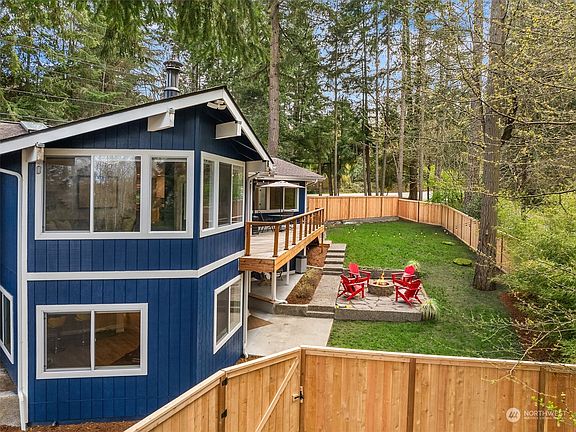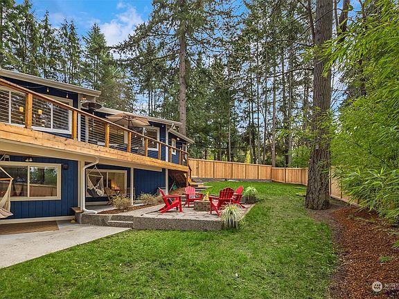 Chic style and easy living embody this beautifully remodeled island home. Thoughtfully designed spaces satisfy versatile living/working needs. Main floor living offers a luxurious primary suite with western views and elegant bathroom; kitchen with tiled walls, stone counters, stainless steel appliances and smart lighting; a welcoming living room with dramatic large windows, vaulted wood ceiling, wood stove, skylight, and glass doors to the IPE deck. The office accommodates guests and has access to a full bath. Upstairs, a bonus room serves as an ideal art studio/playroom. The lower level includes a second ensuite primary bedroom, high-tech home theater, bar, and gym/flex space. Enjoy the nearby, majestic Grand Forest and Manzanita Bay.