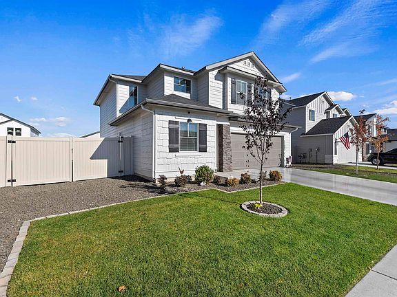 Welcome to your dream home! This immaculate 2022 built two-story residence strikes the perfect balance between elegance and functionality. 4 generous bedrooms, 2 1/2 bathrooms, an office and 2-car garage equipped with a convenient shop area, and 14' x 40' RV parking with 12' double gates - this property is truly better than new! 2,077 square feet with carpet and LVT flooring. The kitchen, a chef's delight with modern appliances, ample counter space and large walk-in pantry that flows into the dining area and living room. Step outside to a beautifully extended concrete patio, surrounded by meticulously landscaped yard and vinyl privacy fencing. Just 1 block from the new City of Star Pavilion Park with dog park, splash pad and future recreation amenities, a few blocks from Hunter's Creek Sports Complex and a short walk to Star Elementary School. Amazing location! Priced under appraised value - sellers moving out-of-state.