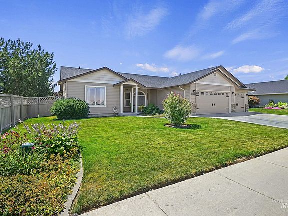 This well maintained home boasts the highly sought after split-bedroom floor plan, master ensuite and walk-in closet, a nice family room, and living area with bay windows. The 3-car garage is a handyman's dream with finished and painted walls, a variety of cupboards, tables and organizers, and uniquely equipped 3rd bay. Enjoy outdoor living at its best with a beautiful covered front porch overlooking the Lake Hazel Middle School playground, an expansive covered back patio in a nicely landscaped yard. Sidewalks lead from the driveway through a gate to the garage's man door, convenient trash can space, two sheds, and the 30' x 10' patio. Well-situated, you'll be just minutes from the South Meridian YMCA & within walking distance to schools, playgrounds and parks.