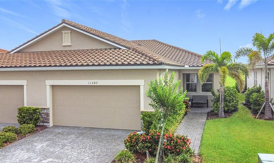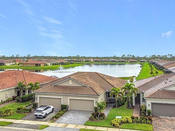 STUNNING LAKE VIEWS, MOMENTS FROM DOWNTOWN WELLEN PARK! FURNISHINGS INCLUDED! Don’t miss your opportunity to own this beautifully appointed Largo model villa in the sought-after, gated community of Renaissance at Wellen Park. Built in 2022, this gently lived-in home still feels brand new — and villas with this premium water view are a rare find in this sought-after community! From the moment you arrive, the decorative paver driveway and walkway set the tone, while the charming front porch offers the perfect spot to relax and unwind. Step through the glass entry door to a welcoming foyer where wood-look plank tile floors, abundant natural light, and a thoughtful open design create an airy, inviting atmosphere. Off the foyer, you'll find a versatile den — ideal as a home office, flex-space, or third bedroom. A private guest suite with a large closet and nearby full bathroom with quartz vanity and shower/tub combo ensures comfort for visitors. At the heart of the home, the open-concept kitchen and living area shine with 42-inch cabinetry, quartz countertops, stainless steel appliances, recessed lighting, and sliding glass pocket door leading to the extended screened lanai. Here, you’ll enjoy sweeping long-lake views framed by tropical landscaping—a peaceful backdrop for morning coffee, entertaining friends, or spotting Florida’s native birds. The primary suite also enjoys the serene lake view and boasts a spa-inspired bath with dual-sink vanity, tiled glass shower, private water closet, and an oversized walk-in closet. Additional highlights include a full two-car garage with epoxy flooring and utility tub, maintenance-assisted exterior (including lawn care), and reasonable HOA fees. Safety minded owners will enjoy the reassurance of hurricane shutters, tile roof, and flood zone X! Life at Renaissance means resort-style living with amenities such as a zero-entry pool with lap lanes, hot tub, fitness center, clubhouse with catering kitchen, outdoor fireplace patio, tennis & pickleball courts, playground, dog park, and more. All this is just minutes from CoolToday Park (spring training home of the Atlanta Braves), Downtown Wellen Park restaurants, shops and events, plus weekly farmer’s markets. With convenient access to both I-75 and Tamiami Trail, you’re a short drive to numerous local beaches, historic Downtown Venice, and booming North Port with Costco and more! This villa offers the perfect combination of modern living, incredible amenities, and an unbeatable location. Schedule your showing today!
