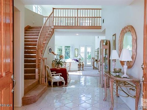 This highly sought after Tuscany home consisting of 4 bedrooms & 3.5 baths is located in one of Moorpark's most desirable neighborhoods and is considered to be a rare find at this price range.With a dramatic entrance, this open & spacious floor plan of approximately 3,949 sq.ft. showcases a formal living room with high ceilings and large windows that draws every speck of natural lighting that you can imagine.A formal dining room for entertaining & a spacious kitchen open to the family room w/backyard views.Master bedroom offers an expanded sitting area w/fireplace & bonus room just perfect for an office/nursery/hobby environment.Other features include;newer carpet, crown molding, formal wet bar,2 secondary bedrooms share connecting bathroom, indoor laundry room, 3-car garage w/workman's area, entertainer's backyard & much more.If you admire national distinguished schools, & prefer secluded parks w/mountain views, close to shopping & restaurants,community pool & spa, then wait no more.