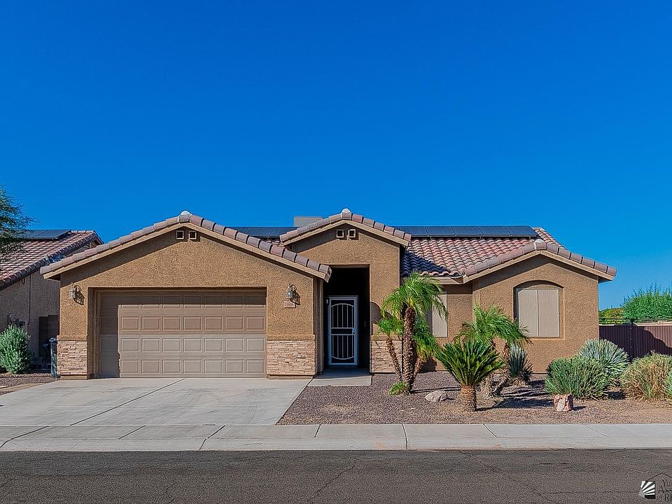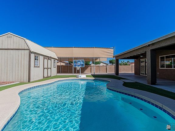 Welcome to Scottsdale East Estates in sunny Yuma, AZ. This well-maintained 3-bedroom, 2-bathroom pool home offers an open, split floor plan with 1,481 sq. ft. of comfortable living space. The interior features fresh Sherwin-Williams Alabaster paint with Ultra White trim, creating a bright and inviting atmosphere throughout. Situated on a corner lot, this property includes a screened RV Awning with two 50-amp connections, suitable for a variety of RV setups, including popping out your slides for easy loading. Plus, enjoy beautiful, low-maintenance landscaping with artificial turf, ideal for year-round curb appeal. A full-length patio provides ample outdoor living space for relaxing or entertaining, and the large storage shed/workshop offers flexibility for tools, hobbies, or pool items. Save some Cash. This home includes a prepaid leased solar system, for added efficiency and value, helping manage energy costs. A thoughtful combination of convenience, comfort, and FUN with plenty of room to enjoy 8 months of Gorgeous Sunny Yuma Weather, and you'll still be able to cool off in your Pool in the 4 months of AZ Dry Heat! — Schedule your viewing today.