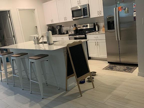 You will have access to a dining are with a grand table that accommodates ten people, making it an ideal spot for entertaining guests or having family meals. The kitchen is open-concept, equipped with top-of-the-line stainless steel appliances and stunning quartz countertops. The kitchen also features an island with three stools providing perfect space for cooking and enjoying casual meals. Alongside the kitchen/dining area is a pantry to put dry goods stored, and a laundry room with access to a washer and dryer.