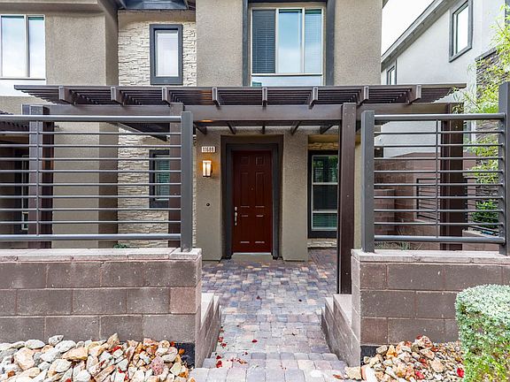 Beautiful 3 bedroom townhouse with 2 car, attached garage with entry to house and auto door opener; Beautifully upgraded with tile flooring throughout the 1st floor, and upgraded carpet on the 2nd; Island kitchen with quartz countertops, breakfast bar, pantry, stainless appliances including built in over, gas cooktop stove, microwave and refrigerator; Living room with covered patio; Great storage area under the stairs; Primary suite with walk in closet, cable outlet, double sink and large walk in shower; Laundry room with full size stackable washer and dryer; Convenient to the 215, Red Rock Casino, Aviator's baseball stadium, Red Rock National Park, Downtown Summerlin and so much more! (Total Rent: $2545; $2450 Rent + $45 RBP + $30 Sewer + $20 Trash)