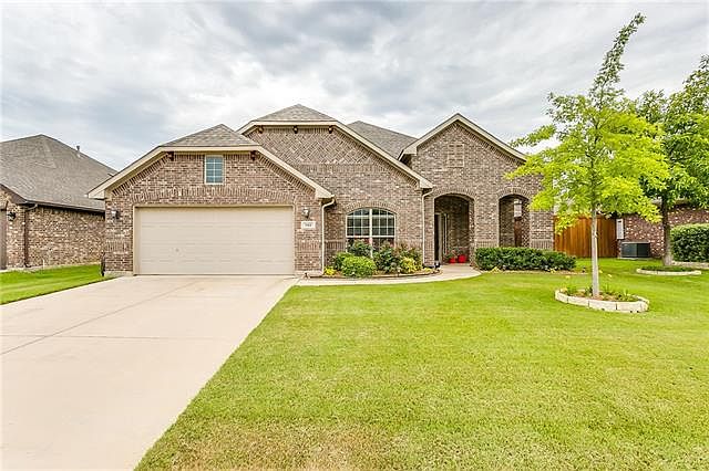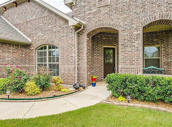 Beautiful 4 bedroom, 2 bathroom home in Oak Valley Estates. Nicely manicured yard. Crown molding throughout. Formal dining w decorative lighting and large windows. Open concept living area is perfect for entertaining. Large living room boasts brick, gas fireplace & wall of windows. Kitchen is gorgeous w SS appliances, granite counter tops, cabinets galore, and a large pantry. Master is very large and has a very nice en-suite equipped w dual sinks, jetted garden tub, and separate shower. All bedrooms are a good size. Walk through utility room with easy access to all bedrooms. Tankless water heater. Radiant barrier in attic. Large covered front and back patio. Nice landscaped backyard w extra tall privacy fence.
