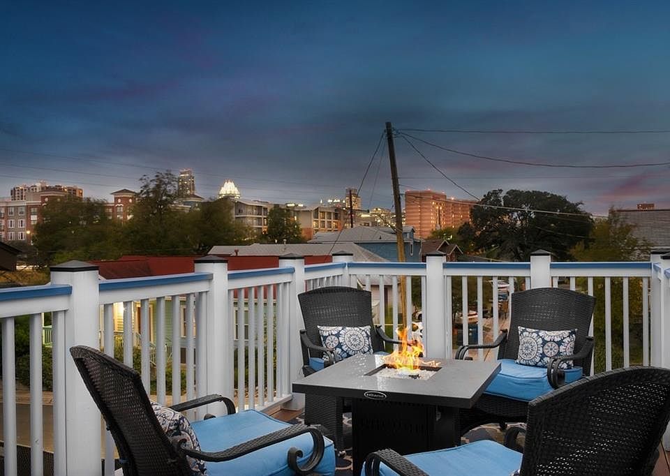 East Austin Gem -incredible views from rooftop terrace overlooking Downtown! Walkable to Hillside Farmacy, Rosewood, Franklin's BBQ and all the east side hot spots. Minutes from Dell Medical Center. Unique floor plan-bedrooms do not share a common wall for added privacy with jack and jill bathroom, Stainless steel appliances & stackable W/D. Recent updates: freshly painted inside and out, replaced roof, driveway added with carport, attic finished out for storage space. ADA accessible. Discreetly appointed wheelchair ramp and wide doors.