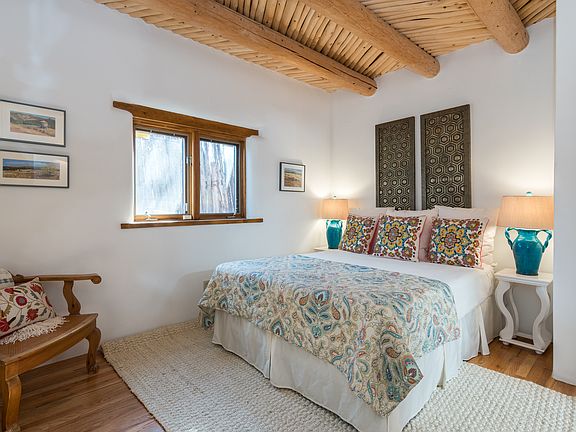 East Side Spanish Contemporary Adobe: Designed by Acclaimed Passive Solar Architect, Rex Roberts, is a Resounding WOW! Price Reduced by $50,000.00 today! Now priced at $925,000.00. $60,000.00 Below Recent Estate Appraisal of $985,000.00! Motivated Retired Seller Says Bring All Offers. Come home to Old Santa Fe Today. This Secluded Santa Fe Sanctuary is Sited on a hilltop above The Santa Fe River, at the end of the lane. This sunny garden retreat lies hidden on the East Side in the Historic Heart of Santa Fe: Split Level Adobe: 3 beds/3 baths/ Flagstone Sun Room/Art studio with North, 4 Kiva Fireplaces, Dry Sauna, Mexican Tile & Hardwood floors, Soaring Clere-Story Windows & Sky Lites, Bright Light filled rooms, Natural Vigas, Latillas, Beams throughout. Covered Portals for outdoor dining. A Sun Bridge from the Master to the Upper View & Sun Deck, Old Growth Canopy of Trees. Original Coyote Fenced & Gated. Stone Terraced Gardens surround the the end of the Fully enclosed Grassy Side yard. 2 Car Garage /additional Storage. Large Pantry, Laundry Closet, Wine Cellar Space Below Stairwell. Private Drive: off street parking for guests & entertaining. This Light Filled adobe Home is an East Side Steal at 925,000.00. Priced 60 K below recent Appraisal of $985,000.00. Appraisal Available!