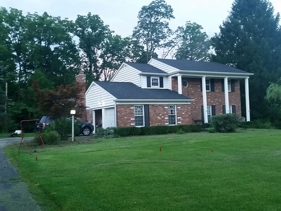 Home sits on 1.88 acres of partially wooded lot with a stream. Huge yard and wonderful sledding hill in the winter. New air conditioner, furnace, upstiars and basement floors and roof. Electric fence and security system. We are looking to downsize but are in no hurry to move.