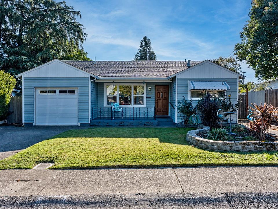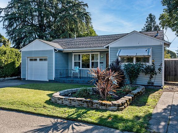 Thoughtfully redesigned and extensively upgraded home is ready for you to call your own. With a floor plan that lives larger than expected, this 2 bedroom home with central heating/air has a detached office and workshop building with future ADU potential. This property blends comfort, versatility, and curb appeal in one exceptional package! Inside, the home features brand new vinyl plank flooring throughout the home with sheetrock repairs with modern rounded corners and dual-pane windows that fill the space with natural light. The stunning new kitchen comes complete with appliances, while the upgraded bathroom boasts a custom-tiled shower and stylish vanity. Enjoy two spacious living areas, generous bedrooms (the primary has two closets), central heating and air, and an attached 1-car garage with a new garage door and freshened laundry area. Step outside to an inviting front porch, landscaped yards, dual driveways, side driveway access to the rear, and a covered rear patio with a whimsical bar area for outdoor entertaining. A standout feature is the detached office and workshop in the backyard, offering incredible potential as a future ADU.