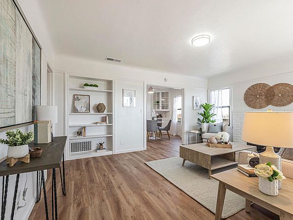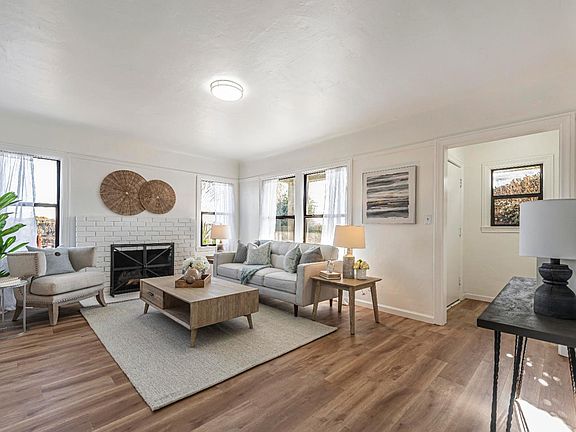 This beautiful 2 bedroom, 1 bathroom house features gleaming new engineered hardwood floors, new interior paint, and new fixtures. Not only does it have two large bedrooms (12"x13.5" and 13x13.5"), but it also has a separate dining room and laundry room. There are 7 closets in the house to store all of your family's items. The garage is an oversized one-car garage (17"x19.9") with an automatic opener. You'll love the fireplace in the living room and the original character of the home. The home is located on an cul-de-sac next to the San Francisquito walking trails and green space. Buyer to verify square footage, no appliances included.