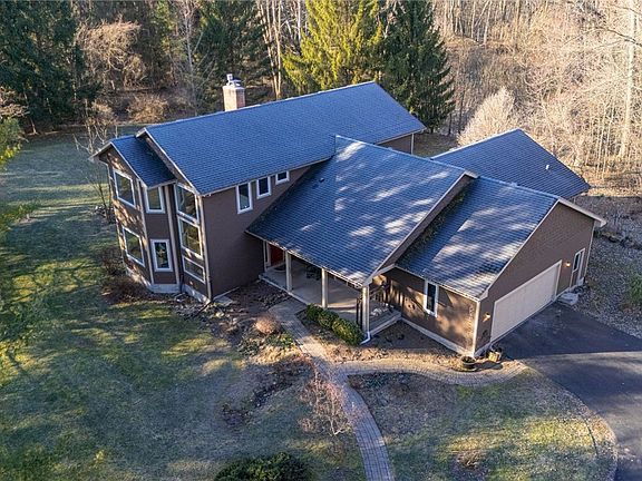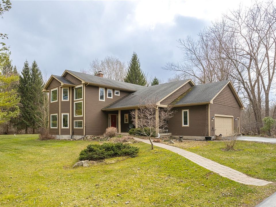 Wow! This is a one-of-a-kind opportunity to own a truly private, Hibsch-built, contemporary style farmhouse on almost ten acres in the Brockport school district. With over 2,800 square feet, this home's architectural features will take your breath away...huge windows, cathedral ceilings, a massive brick fireplace, gorgeous hardwoods with matching floor-to-ceiling built-ins, and an open-concept kitchen. Plus, you'll love the first floor suite with walk-in closet, first floor laundry, huge mud room, and immense basement if you want to create more finished space! New carpet and paint throughout. Brand new furnace. Front deck to enjoy the birds. Back deck to watch the deer. Chicken coop. Fenced in area for your pet. Retaining pond on property could be dug out to be made more permanent. Sale includes two lots, one of which is 2.44 of the 9.8 acres, is known in the tax code as 1185 Reed Road, and which could be sold off separately at a later date).A one year Home Warranty is included in the purchase! **DELAYED NEGOTATIONS are in effect with offers due TUESDAY 4/1 AT 11AM**