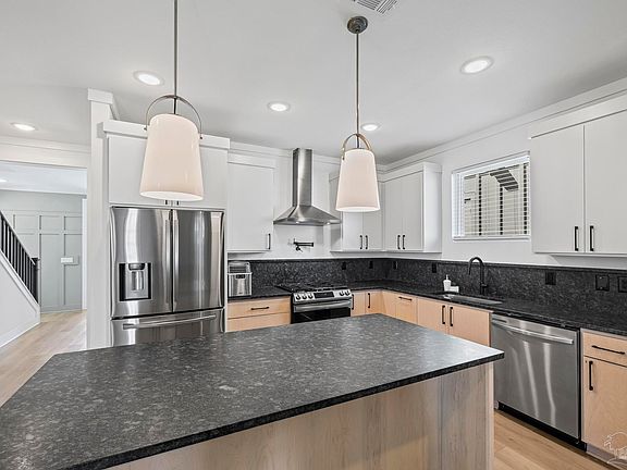 Built in 2022, this 3-bedroom, 2.5-bath modern home offers the perfect combination of style, function, and location—just minutes from downtown Pensacola and less than 5 miles from NAS. The open-concept layout features soaring ceilings, abundant natural light, and a designer kitchen with an oversized island, custom cabinetry, and a striking fireplace. Upstairs, the spacious primary suite includes a spa-like bath and a walk-in closet with direct access to the laundry room for added convenience. With sleek contemporary finishes, eye-catching architecture, and a welcoming front porch, this home is ideal for modern living in one of Pensacola’s most vibrant areas.