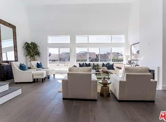 Completely remodeled penthouse in "Villa Monet". Prime Brentwood location close to coffee bars, restaurants & retail on trendy San Vicente Blvd. Elegant double door entry with 18' ceilings & skylight. Spacious living room with high ceilings, fireplace & large windows allowing in tons of natural light. Stunning, open kitchen with pure white quartz counters, custom cabinets & Fisher&Paykel appl including double ovens, cooktop, double drawer dishwasher & refrig. Gorgeous bar/sitting area finished with quartz counter & wine cooler. Master bedroom with huge windows, fireplace, vanity/dressing area & large walk-in closet. Stunning master bathroom with dual sinks, spa tub & large walk in shower. Second bedroom/loft with en-suite bathroom & access to huge outdoor patio area with views. Gorgeous wood floors throughout (Except bathrooms). Full laundry room. Additional storage inside the unit and in the garage. Villa Monet has an indoor swimming pool, fitness center and secure guest parking.