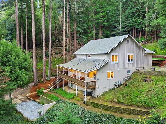 Enjoy privacy & serenity in this lovely Brookdale home cradled by the majestic redwoods. Step into the thoughtfully designed floor plan, which flows seamlessly from the kitchen to the living room. An enormous chef's kitchen features plentiful counter space, all stainless steel appliances + extra storage. Extra large windows throughout the home capture the picturesque forest views. Enjoy the primary bedroom's luxurious ensuite w/a massive walk-in closet. All bedrooms are roomy & well-designed, w/ high ceilings & plenty of room to move around. Check out the 4th bedroom w/ a private separate entrance & sink, perfect for long-term guests or multi-generational living. The well-maintained yard is spotted w/ trees & has a turf field for passing around a soccer ball or enjoying the sun. Easy access onto historic Hwy 9- head east into Boulder Creek for local favorites like Scopazzi's & boutique shopping- or head west to Santa Cruz for entertainment & countless beaches.