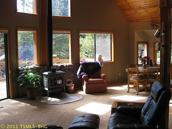 Level sunny driveway, low snow load on a quiet street in Tahoe Donner, this well kept remodeled home is beautifully landscaped with an irrigation system and has low impact from quiet neighbors. Remodeled open kitchen, trex decking, backyard access, invisible dog fence with collar, backs to greenbelt. Great storage under home.