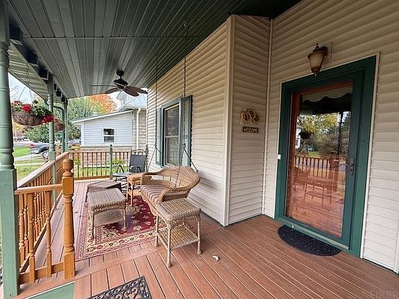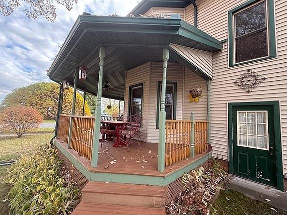 Welcome to this stunning home perfectly situated on a spacious corner lot — a rare gem that beautifully blends historic warmth with modern efficiency. Step inside and be captivated by the hearts of pine and gleaming wood floors, filling each room with natural character and charm. The updated kitchen features contemporary finishes, making it the heart of the home for both cooking and gathering. Enjoy year-round comfort with geothermal heating, enhanced insulation, newer windows, and a durable steel roof — all combining to ensure energy efficiency and peace of mind. Outside, admire the new concrete walkways, raised garden beds, and lovely landscaping that create a welcoming outdoor oasis. The wraparound porch is nothing short of amazing — the perfect spot for relaxing mornings or peaceful evenings. A detached garage/workshop offers approximately 1,000 sq. ft. of flexible space for projects, hobbies, or extra storage. Every detail of this property has been thoughtfully cared for — from the modern upgrades to the classic craftsmanship. This home truly offers the best of both worlds: timeless beauty and smart living.