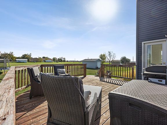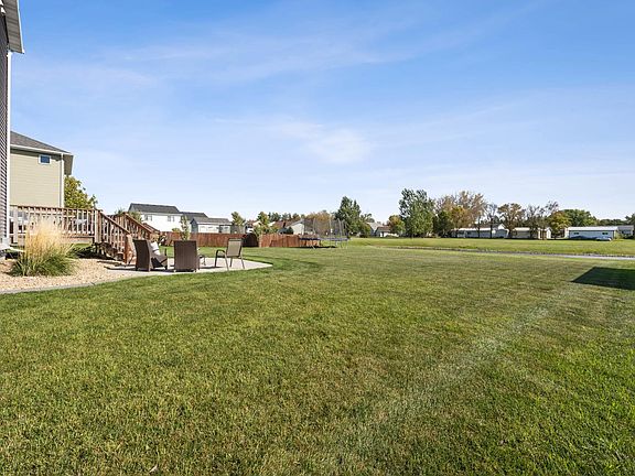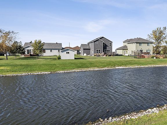 Small town living 2 story on .25 acre pond lot is fully finished with four bedrooms up! Light and bright, welcoming main level with 9’ ceilings, fireplace, 2-tiered large island, walk-in pantry, beautiful cabinetry and tiled backsplash. Eat-in kitchen leads to beautiful backyard with deck, patio, landscaping, sprinkler system and pond view. Entertaining lower level with large wet bar! Ship-lap detail in cozy family room opens to large bar area with beautiful detail and finishes. Four bedrooms up includes primary suite with private bath and walk-in closet. Ensuite bath has double sinks plus large vanity with cabinetry. Three additional nice-sized bedrooms plus full bath with double sinks and laundry room on upper level. Propane forced air, central air, air exchanger plus heated garage with floor drain. Available school busing from Moorhead, DGF and Barnesville. Enjoy the peace and serenity of small town living in this beautiful, well-maintained home!