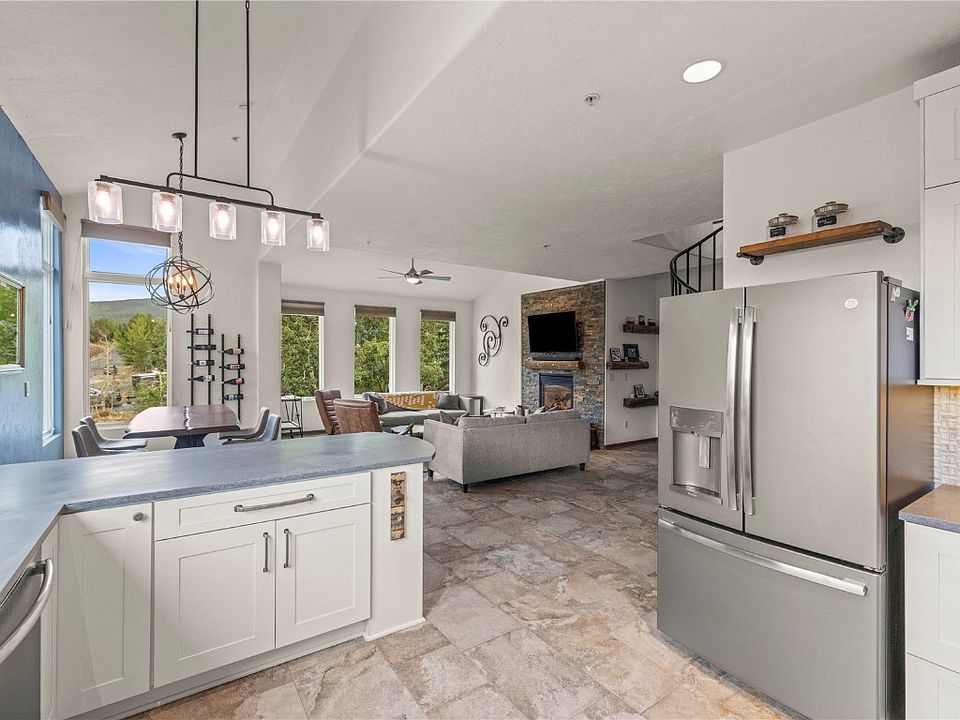 The vaulted ceilings and open floor plan create an airy, inviting space—perfect for entertaining friends or enjoying a quiet evening by the fireplace. You’ll love the ease of your in-unit washer and dryer, two dedicated underground parking spaces, and a private storage area in the heated garage for all your mountain gear.