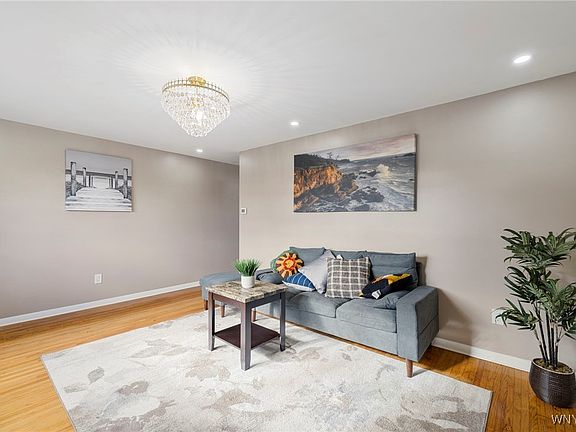 Beautifully updated Ranch-style home located in a quiet and desirable Depew neighborhood, featuring 3 spacious bedrooms, a large and bright living room, and a modern eat-in kitchen with stylish finishes. The home includes a fully updated bathroom with elegant tiles and fixtures, an attached 1-car garage, a full basement for extra storage or recreation, and a fully fenced yard offering privacy and outdoor enjoyment. Recent 2025 updates include a new roof, new siding, new driveway, new windows with window trim, new garage door, and modern lighting throughout. The kitchen and bathroom have been tastefully remodeled with contemporary materials and thoughtful design. This move-in-ready home perfectly blends comfort, functionality, and charm—located close to schools, parks, shopping, and major highways, making it ideal for first-time buyers or anyone looking to downsize in a peaceful, family-friendly neighborhood.