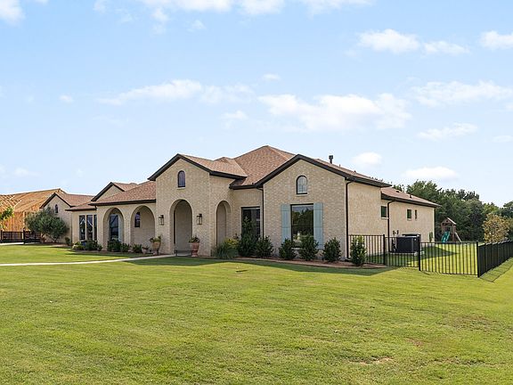 Welcome to this stunning custom-built 5 bedroom, 3.5 bath home, completed in 2022, tucked away in a quiet cul-de-sac within a small, private community and located in the highly acclaimed Rockwall ISD. Designed with comfort, functionality, and style in mind, this sprawling one-story residence sits on almost an acre, offering both privacy and room to grow. A gated driveway welcomes you to the oversized 3-car garage, while an inviting extended front porch sets the tone for the thoughtfully designed interiors. Inside, low-maintenance polished concrete floors flow seamlessly throughout, perfectly complementing the home’s high-end fixtures and finishes. Walls of windows at the front and back of the home fill the spaces with abundant natural light, creating a warm and open feel. The flexible floor plan was crafted for both families and entertaining, featuring a large game room, versatile flex space that could be media room or office space, and spacious living room that flows effortlessly into the gourmet kitchen. The kitchen boasts generous counter space, premium appliances, and an oversized island ideal for gatherings. Step outside to enjoy the expansive covered patio, complete with an outdoor living area and kitchen—perfect for dining al fresco or relaxing while overlooking the meticulously maintained lawn and professional landscaping. With its combination of luxury, practicality, and thoughtful design, this property offers the best of space and modern convenience, all within minutes of Heath shopping, dining, and lake access.