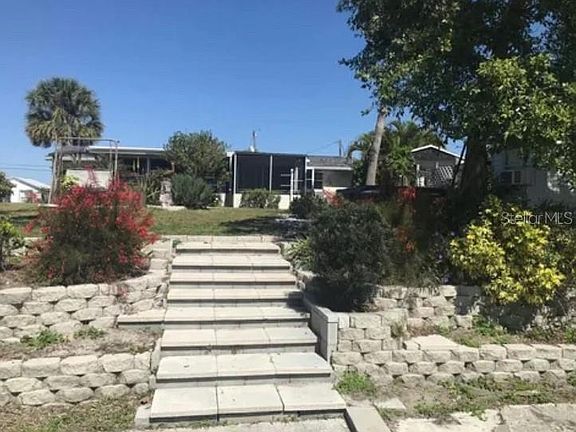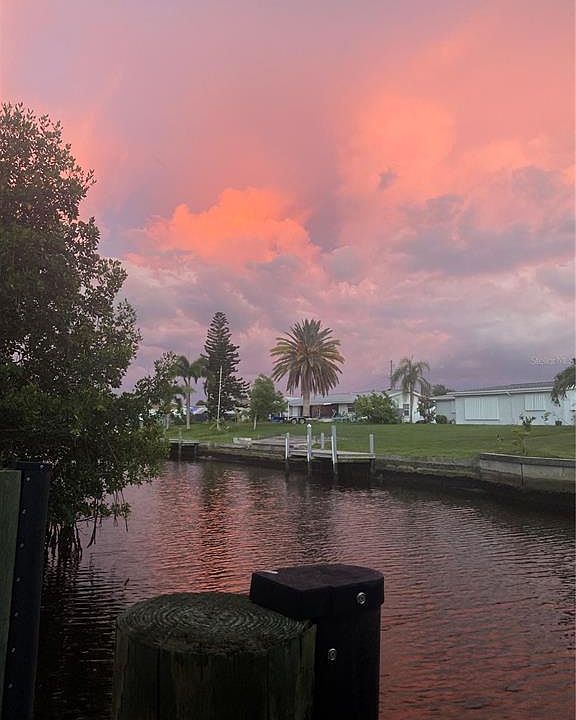 Coastal living meets everyday comfort in this charming 2-bedroom, 1-bath waterfront home on a saltwater canal with direct access to Charlotte Harbor, only one bridge away! This home has never flooded and showcases a beautifully remodeled kitchen and bath, terrazzo floors in the bedrooms, and a large living area with French doors opening onto an expansive Florida room, creating a seamless indoor-outdoor flow. Step outside to a spacious screened porch and large patio surrounded by mature, tropical landscaping. A concrete dock (installed 2019) provides the perfect spot to fish, launch your kayak, or tie up your boat. Two storage sheds and a hot tub complete this well-cared-for property. Situated in a great location near local restaurants, parks, and a nearby boat launch, this home offers the ideal Florida lifestyle; perfect for relaxing, entertaining, or setting out for a day on the water.