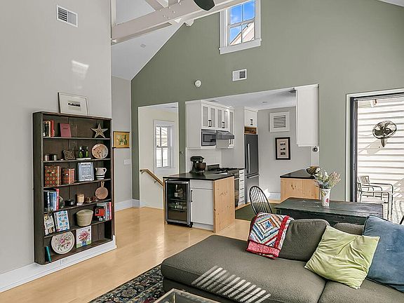 Be delighted w/ this one bedroom + den residence in Harleston Village w/ vaulted ceilings, cascading natural sunlight and an open and spacious layout. The updated kitchen offers a gas range w/ subway tile backsplash, stainless appliances, beverage fridge + stone countertops. The spacious living room w/ high vaulted ceilings + dining space flows nicely to the private balcony. Large bedroom w/ organized walk-in closet, an additional office space + side by side laundry area leads to full bath w/ vanity + tiled standup shower w/ glass enclosure. Designated off street parking space and a short jaunt to vibrant Charleston landmarks, restaurants, cafe's and bars. This contemporary home has the space you want in the location you desire. Come experience low country living at its finest.