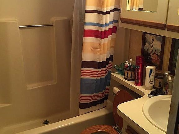 here is a really nice lake front home located in badin shores gated community. it will come completely furnished. has 3 full size bedrooms and 1 small bedroom with bunk beds in it. has 1 bathroom, huge 34X12 covered screened porch overlooking lake marina. the original structure is a 1990 park model which is considered manufactured home. a stick built room addition was added in 2013. you will need creative financing or cash to purchase this home as it is considered manufactured. call today for your showing 336-nine26-6542