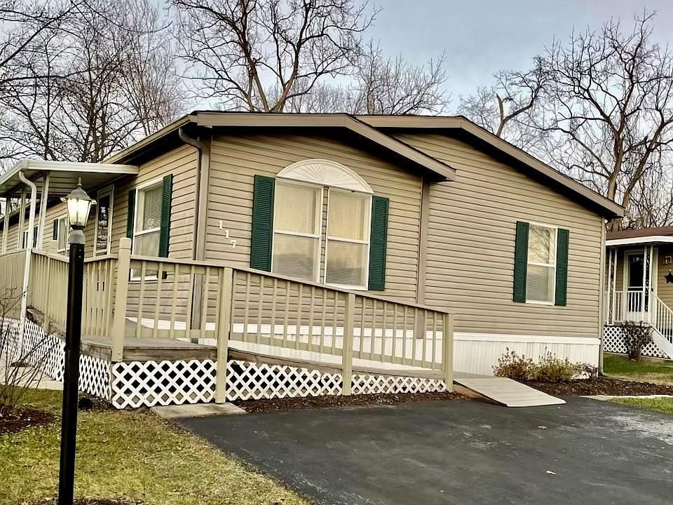 Enjoy peaceful living in this 55+ community, nestled near a wooded area where you can often spot wildlife right from your desk. This spacious double-wide home offers three bedrooms, two full bathrooms, and convenient one-floor living. Features include a ramp, walk-in shower, sunroom, utility room, and an updated kitchen with a pantry. Close to shopping, major highways, and medical facilities—come see why this should be your next home.