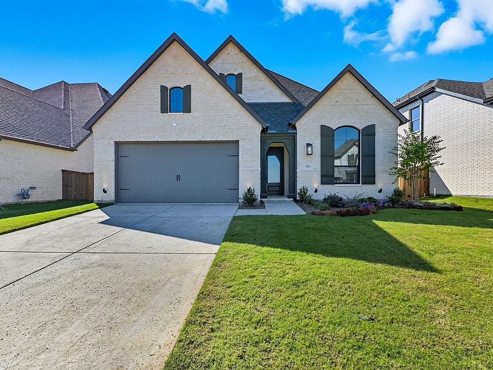 MLS# 20963517 - Built by Highland Homes - September completion! ~ 1 story, 4 bedrooms, 3 baths, family room, dining area, study, entertainment room, extended outdoor living area, 2 car garage extended 4' in depth. Light brick, uplights, custom front door, painted brick fireplace, 8' interior doors! Kitchen features extended lighted glass upper cabinets, upgraded quartz countertops, upgraded backsplash, White apron kitchen sink, pendant & undercabinet lights! Primary Bay Window & freestanding tub with separate shower. Wood floors, carpet & tile upgrades!