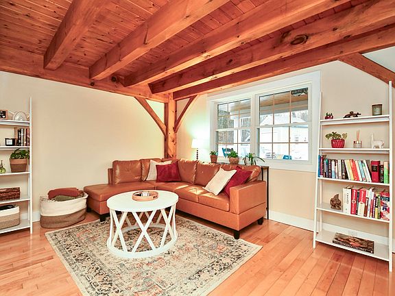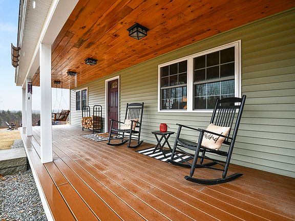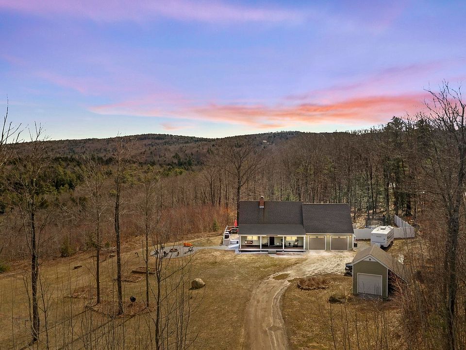 Welcome to your dream mountain retreat! This stunning 3-bedroom, 2.5-bathroom home nestled on a sprawling 16-acre lot offers the perfect blend of rustic charm & modern convenience. The inviting farmer's porch beckons you to unwind & enjoy the serene surroundings. Discover the timeless beauty of post and beam construction, complemented by gleaming HW floors & beamed ceilings throughout the 1st level. Entertain with ease in the open-concept living spaces, including a spacious living room, family room with a wood stove, and a dining area with slider access to the expansive back deck and fenced yard. The well-appointed kitchen boasts granite countertops, breakfast bar & pantry. Completing the main level is a convenient half bath & a mudroom area with access to the attached 2-car garage. Upstairs find 3 generously sized bedrooms, including a shared full bath & a tranquil primary suite w/ its own private bath. Outside, the NEW huge back deck offers the perfect spot for alfresco dining & entertaining while overlooking the New Hampshire hills. A separate oversized drive-through shed w/ storage above provides ample space for all your outdoor equipment & toys. Trails on the property are suitable for hiking and ATV fun! With its picturesque setting, impeccable craftsmanship & abundance of space both inside & out, this gem is sure to WOW! Thanks to all who visited the home. OFFERS DUE MONDAY, MARCH 25 AT 8:00PM