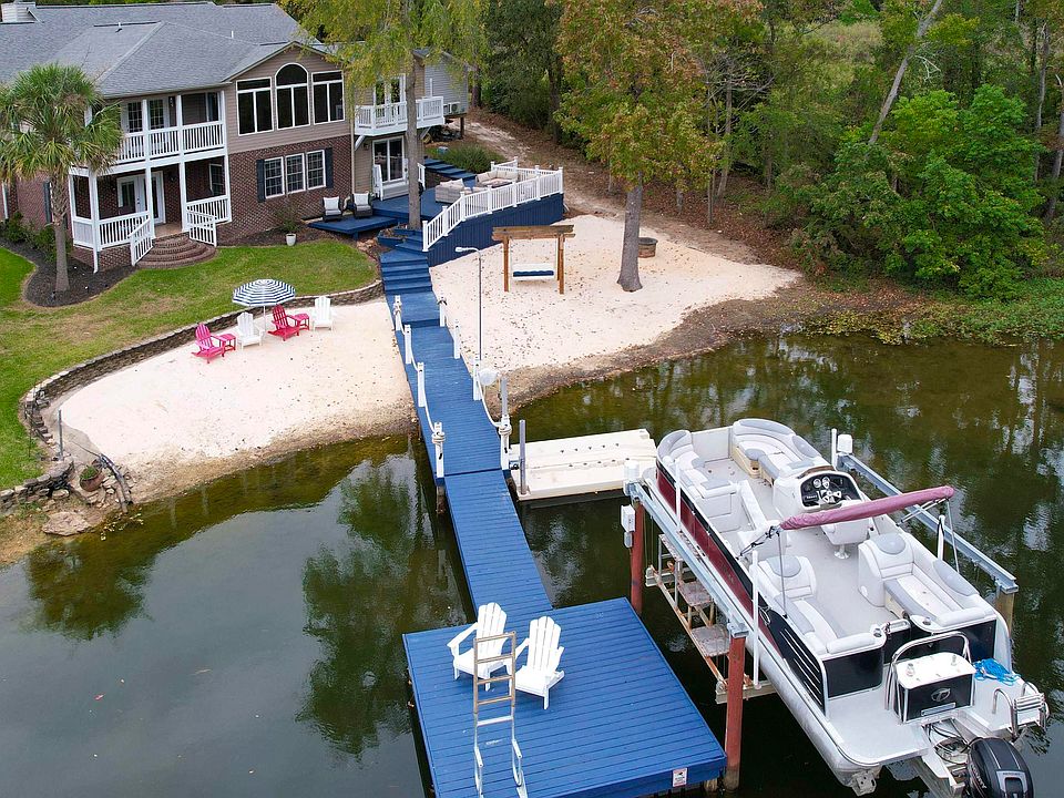 Experience lakefront living at its finest in this stunning 5- bedroom, 4-bath home designed with a true resort feel. Nestled in a quiet area with no HOA, this rare beachfront property is completely turn-key, offering luxury, comfort, and privacy. Inside, you’ll find laminate floors, quartz countertops, and a beautifully appointed kitchen featuring a reverse osmosis system to the pot filler, sink, and refrigerator, along with a Quality Life water softener. The custom master closet and spa-inspired bathroom create an elegant retreat, while the walk-out basement, theatre room, and flex/media room— which could serve as a 6th bedroom—provides plenty of space to relax or entertain. Enjoy peaceful views from your newly updated deck, or spend the day on the water with your private boat lift and jet ski dock. A detached garage, well, and septic system provide convenience and independence. Boat and jet skis available for purchase separately. Disclaimer: CMLS has not reviewed and, therefore, does not endorse vendors who may appear in listings.
