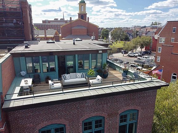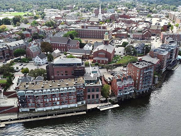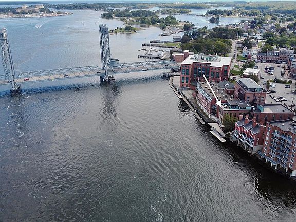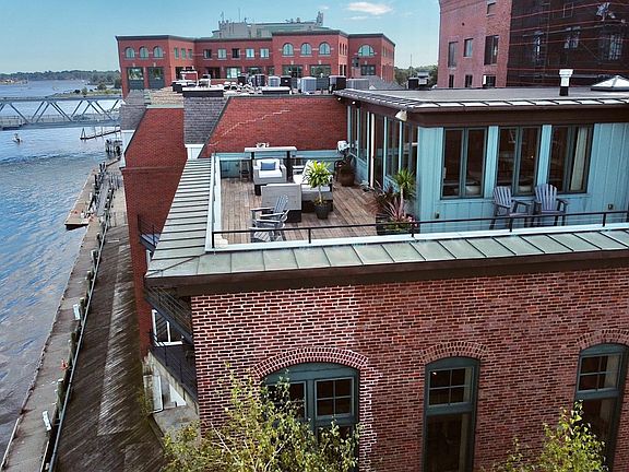 Nestled in the heart of historic downtown Portsmouth, this riverfront condo offers luxurious waterfront living. This extraordinary four-level residence stands as one of the finest riverfront condo ever offered for sale. From the moment you step into this abode, you're greeted by a variety of architectural beauty. The expansive wrap-around rooftop deck, an oasis of tranquility offering unparalleled views of the Piscataqua River. Marvel at breathtaking sunsets, watch ships glide by gracefully, and witness the bridge come alive with captivating illumination during the evening. The pavilion level sets the stage for entertainment, featuring a sophisticated bar and a living room/lounge adorned with a gas fireplace. The main level is a true masterpiece of design, boasting floor-to-ceiling windows that frame sweeping panoramic views of the river. The custom-built mantle with its soft curves adds a touch of timeless elegance, a large designer kitchen and coffered ceilings make the space feel open and elegant. Two en-suite bedrooms, each with custom bathrooms, luxurious showers, walk-in closets, and outdoor deck space, allowing for the perfect selection of a primary bedroom tailored to your preferences. Additionally, this property offers the luxury of two deeded parking spaces. Every inch of this residence has been meticulously curated with local artisans and the most premier materials used. A rare chance to call this exclusive riverfront home your own. This is truly one of a kind.