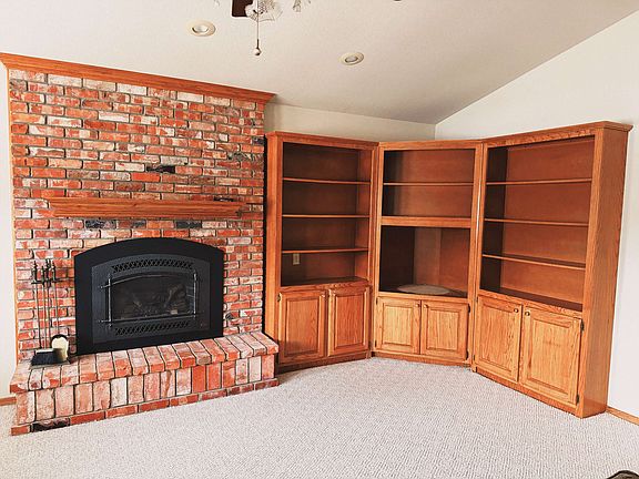 Open living planLarge built-insWood privacy fenceLarge brick woodburning fireplaceHigh ceilings